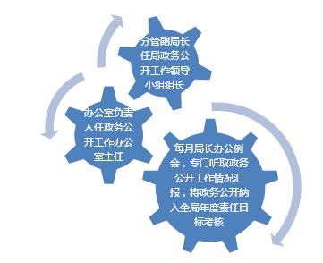 我局明确由分管副局长任局政务公开工作领导小组组长,办公室负责人任政务公开工作办公室主任,强化“党委领导、行政主抓、办公室牵头、纪检监督检查”的工作机制,每月局长办公例会,专门听取政务公开、效能建设工作情况报告。