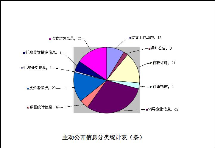 我局在中国证监会政府信息公开平台公开政府信息137条,具体包括:监管工作动态12条、通知公告3条、行政许可21条(含行政许可决定公示10条、进度公示11条)、办事指南4条、数据统计信息6条、投资者保护信息20条、辅导企业信息42条、监管对象名录21条。行政处罚信息1条,行政监管措施7条。