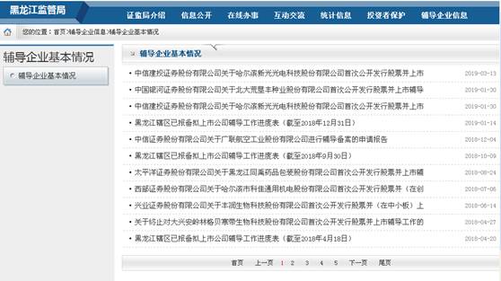 在“行政许可”栏目发布行政许可批复2件,包括行政许可事项、设定依据、审批对象等信息。在“辅导企业信息”栏目发布上市辅导基本情况表、工作进度表等信息共计12条。