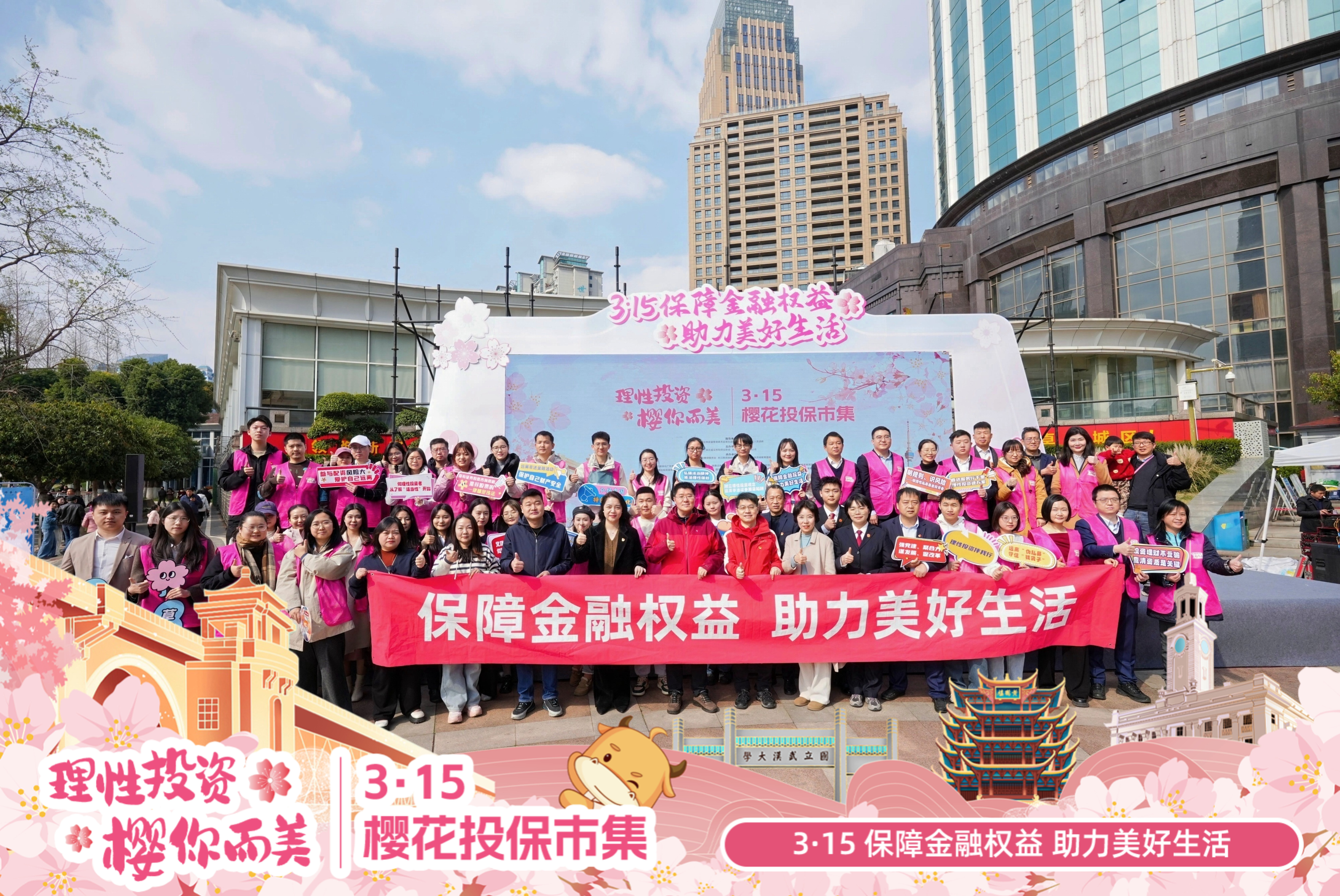 三月的武汉樱花缤纷。在“3.15”消费者权益保护日到来之际,湖北局指导组织行业协会和市场主体,举办以“保护金融权益助力美好生活”为主题的“3.15樱花投保集市”活动,寓教于乐,广泛宣传投保政策和法律法规,取得良好效果。