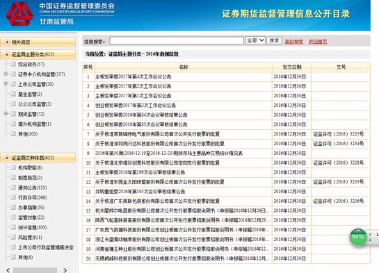 甘肃证监局2016年政府信息公开工作年度报告