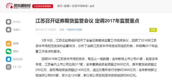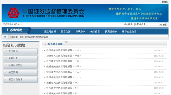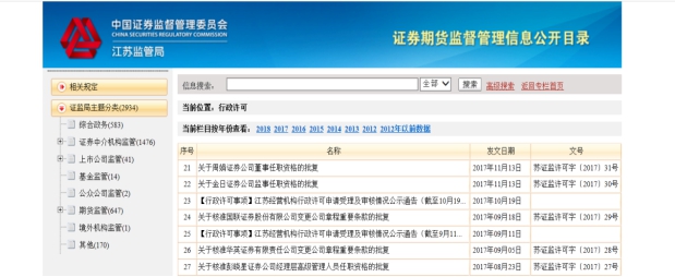 江苏证监局2017年政府信息公开工作年度报告