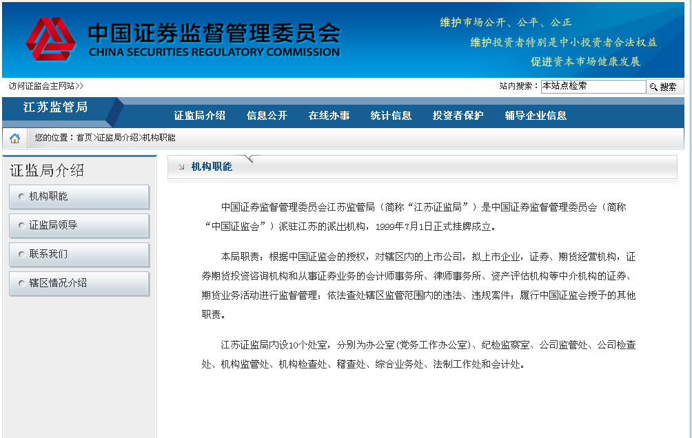 江苏证监局2016年政府信息公开工作年度报告