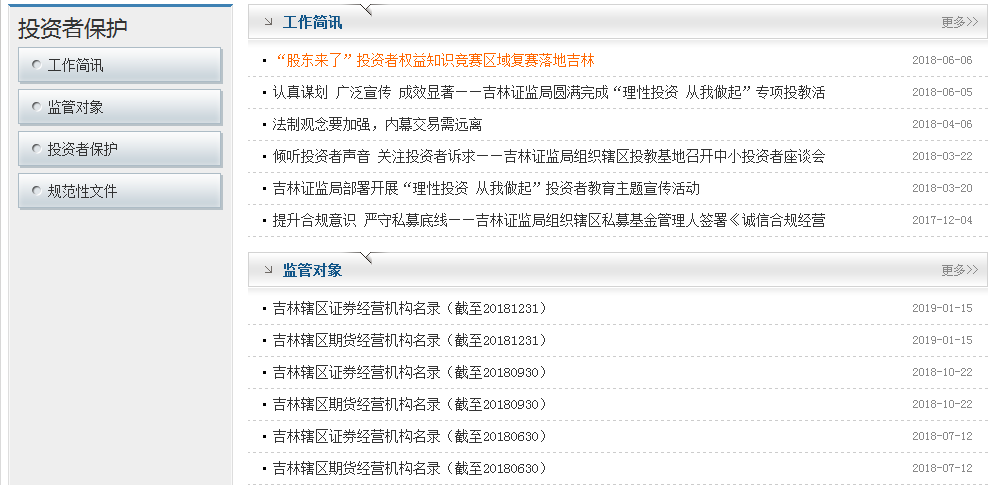 吉林证监局2018年政府信息公开工作年度报告