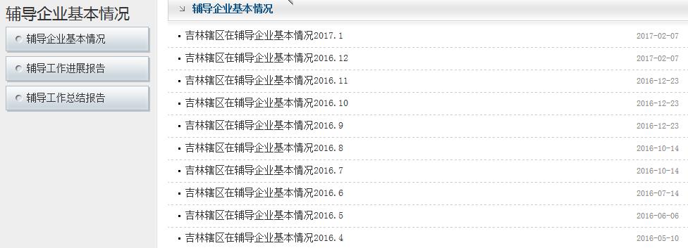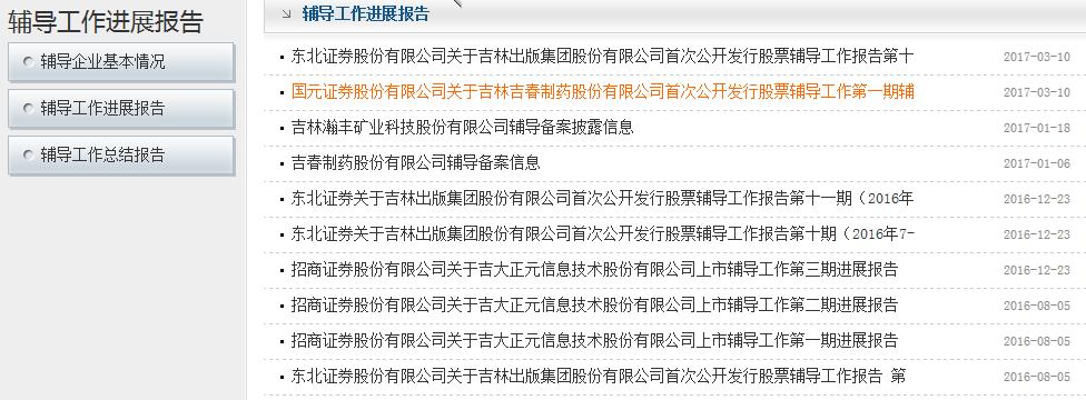 在“辅导企业信息”栏目发布信息20件。主要包括辅导企业基本情况、辅导工作进展报告以及企业辅导备案信息等。