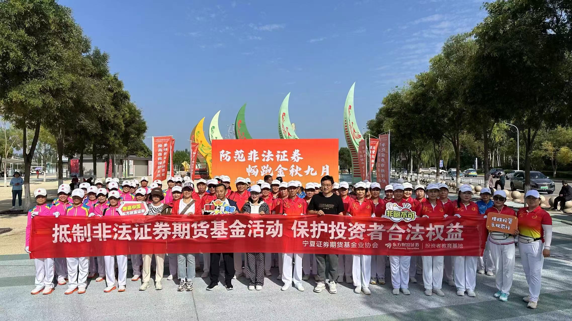 在第75个国庆节来临之际,为积极响应中国证券业协会“防范非法证券宣传健康跑”活动号召,进一步加强防范非法证券期货基金常态化宣传,宁夏证监局指导宁夏证券期货基金业协会,联合东方财富证券银川营业部和宁夏健步走运动协会,在银川市花博园开展“抵制非法证券期货基金活动,保护投资者合法权益”防非宣传健步走活动,旨在增强人民群众对非法证券期货基金活动的防范意识和识别能力,保护投资者合法权益,凝聚行业信心,弘扬理性投资理念。