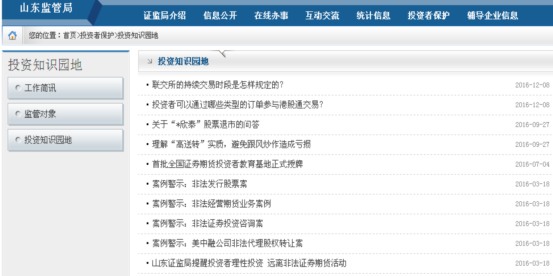 | 名 称 | 山东证监局2016年政府信息公开工作年度报告 | ||
