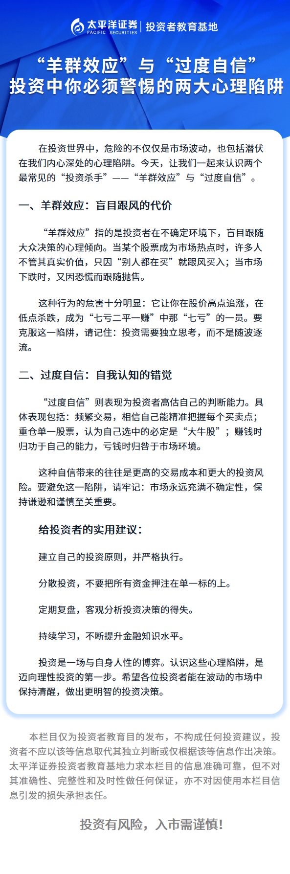 辖区投教作品-“羊群效应”与“过度自信”投资中你必须警惕的两大心理陷阱