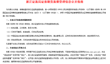 在“办事指南”栏目发布备案及审批类事项等工作指引1项,为《浙江证监局证券期货监督管理信息公开指南》。