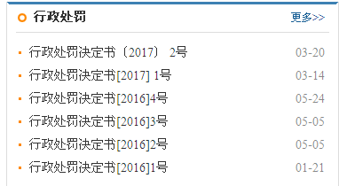 在“行政处罚”栏目发布我局行政处罚决定书4件,实现监管权力的阳光化和透明化。