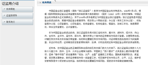 根据局内处室调整情况,在“证监局介绍”栏目及时更新机构职能等信息。